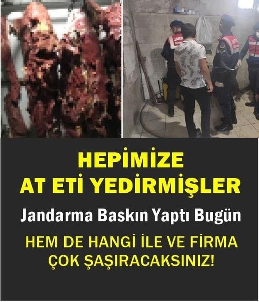 Piyasaya sürdükleri onlarca kilo at etine jandarma baskın yaptı. Yapılan baskında il adı da yayınlandı. GORSELE Tİ.KLAYARAK DİĞER SAYFADA DETAYLARI OKUYUNUZ…