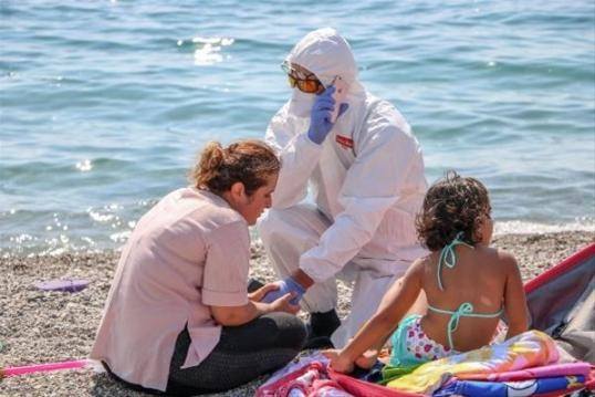 Çevresinde denize girenlerin “Sıkıntın nedir” sorusuna corona virüs olduğunu ve ölmek istemediğini belirtti. Sahilde güneşlenenler kadının zaman zaman yere tükürmesinden de rahatsızlık hissedip yakınından uzaklaştı. Sahildekilerin ihbarı üzerine olay yerine polis çağrıldı, cankurtarana bilgi verdi.